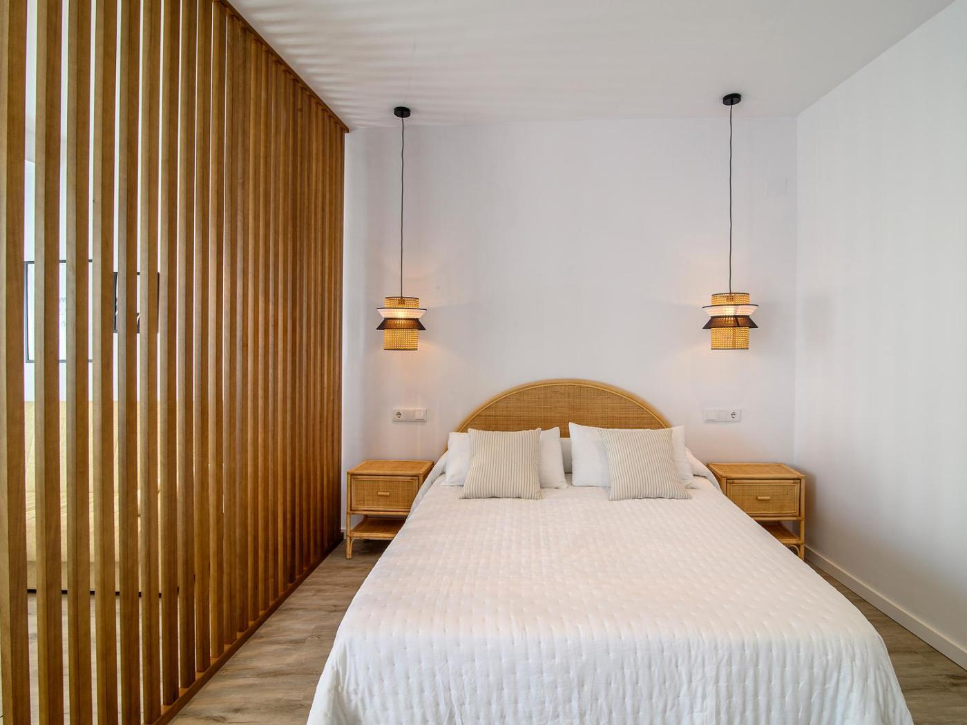 Estudio Deluxe con cama grande. The air-conditioned suite has 1 bedroom and 1 bathroom with a bath and a shower. This suite features a wardrobe, heating and a flat-screen TV. The unit has 1 bed. ;
