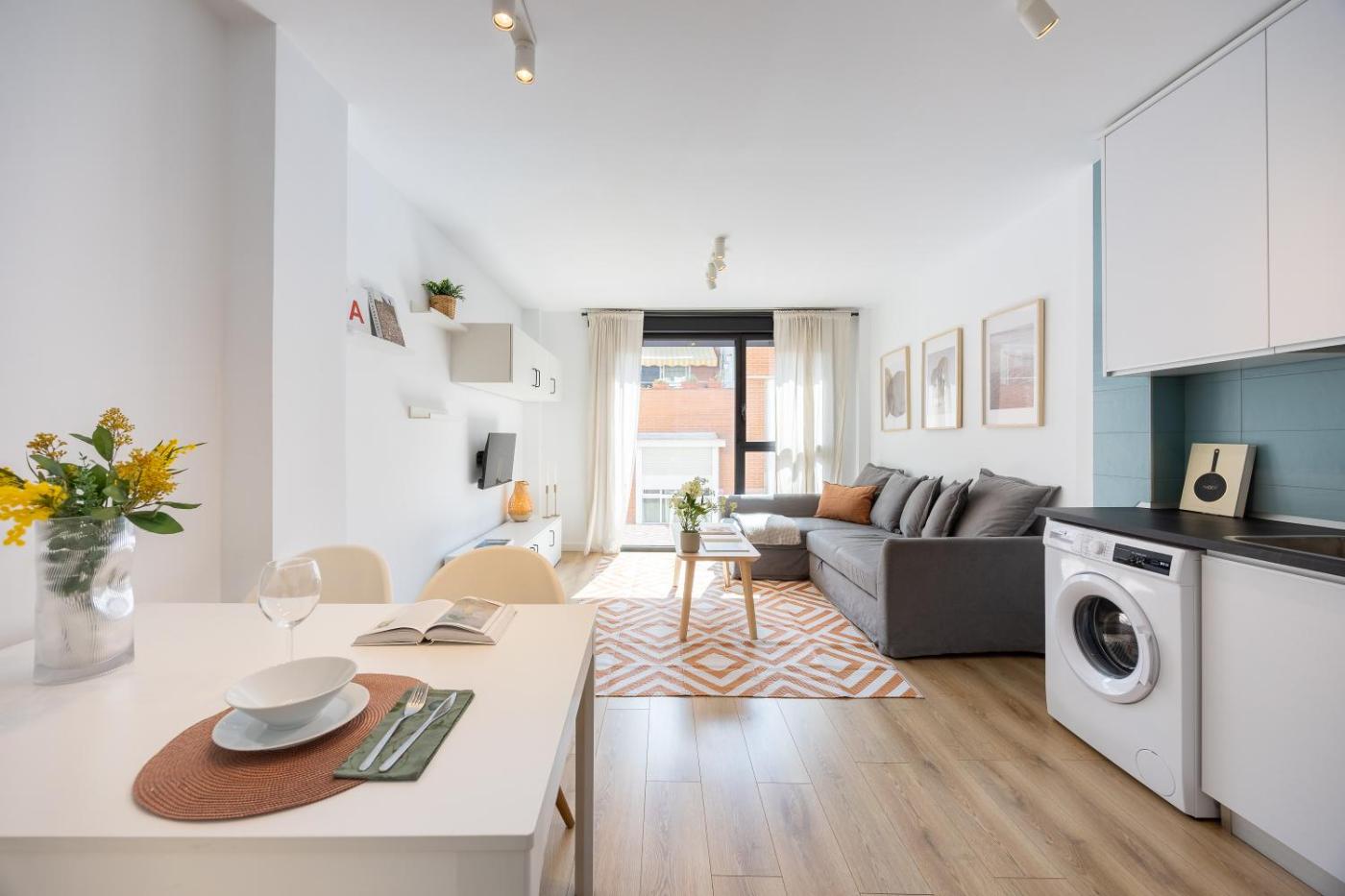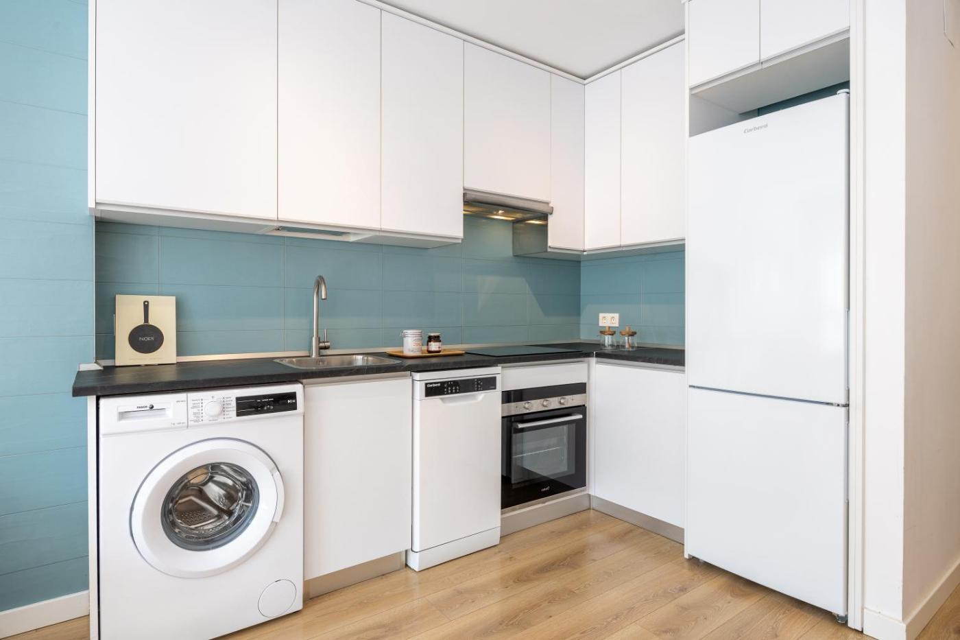 Apartamento Deluxe de 1 dormitorio. This apartment comes with 1 living room, 1 separate bedroom and 1 bathroom with a shower and free toiletries. Meals can be prepared in the well-fitted kitchen, which features a refrigerator, a dishwasher, kitchenware and an oven. This apartment is air-conditioned and has a seating area with a flat-screen TV, a washing machine, soundproof walls, a tea and coffee maker, as well as a dining area. The unit has 2 beds. ;