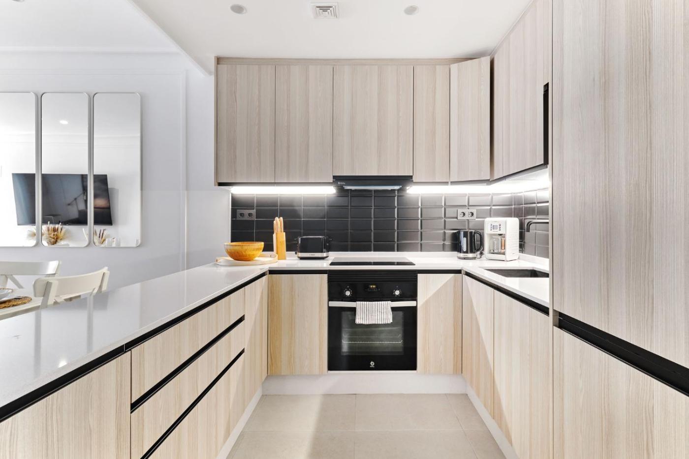 Este apartamento con aire acondicionado consta de 3 dormitorios, una sala de estar, una cocina totalmente equipada con nevera y cafetera, y 2 baños con ducha. Hay toallas y ropa de cama en el apartamento.